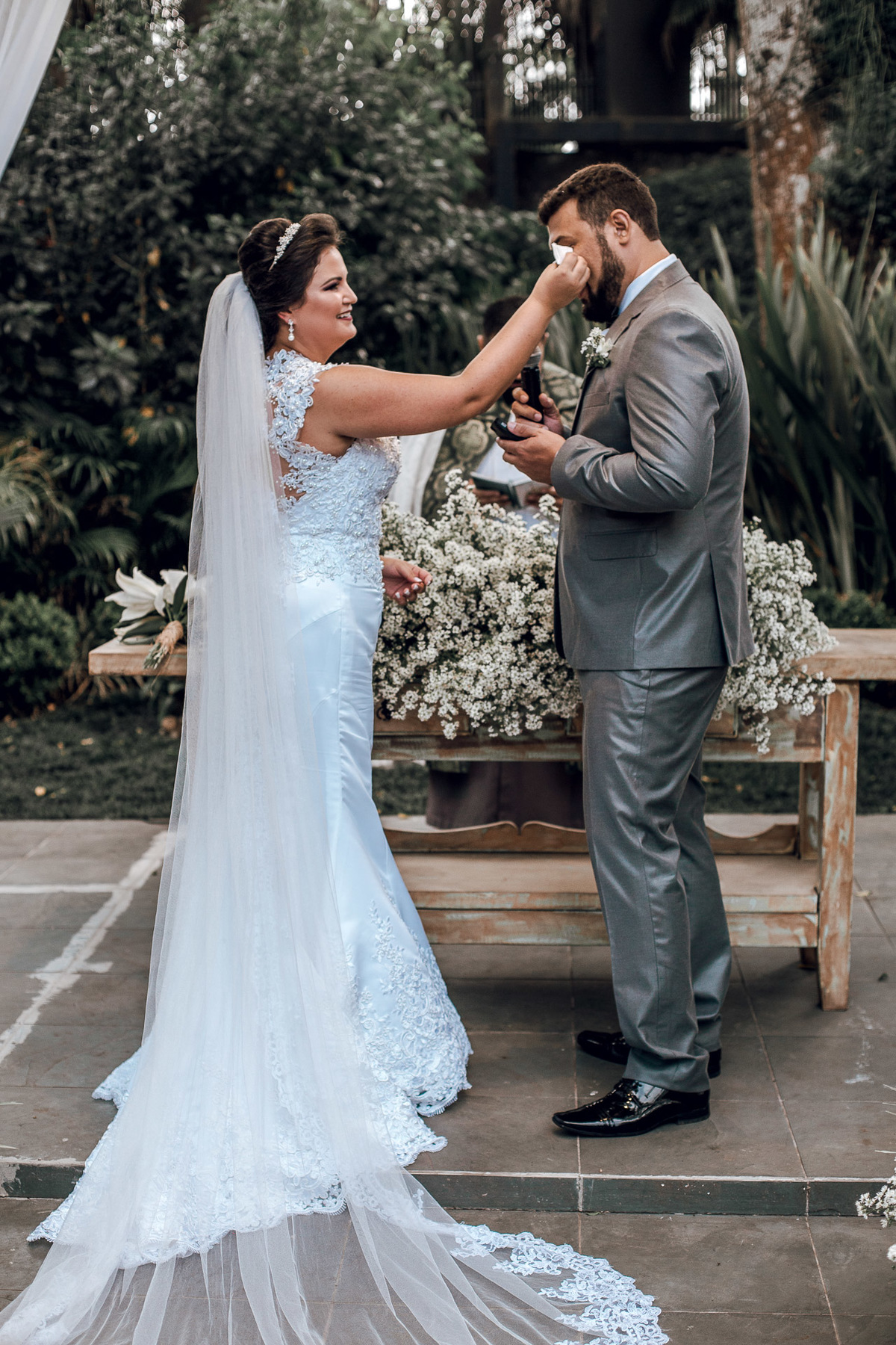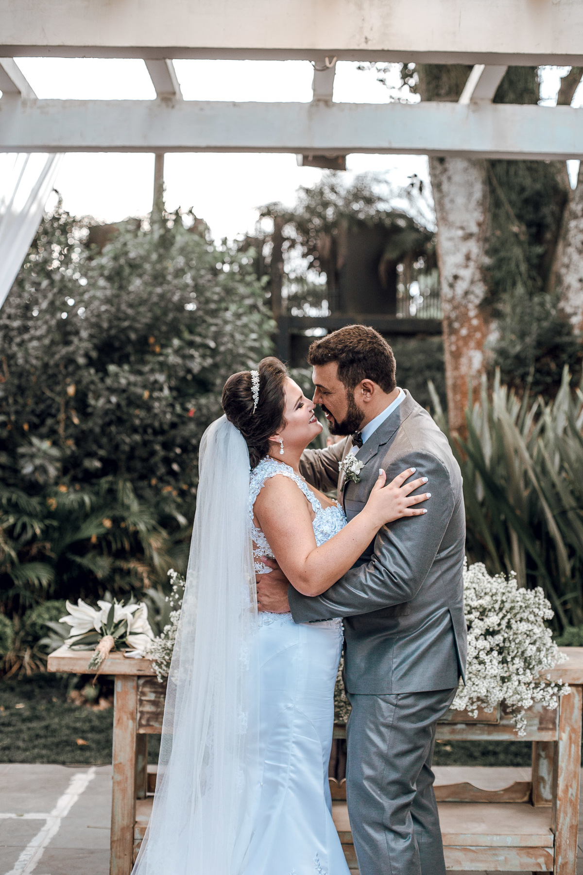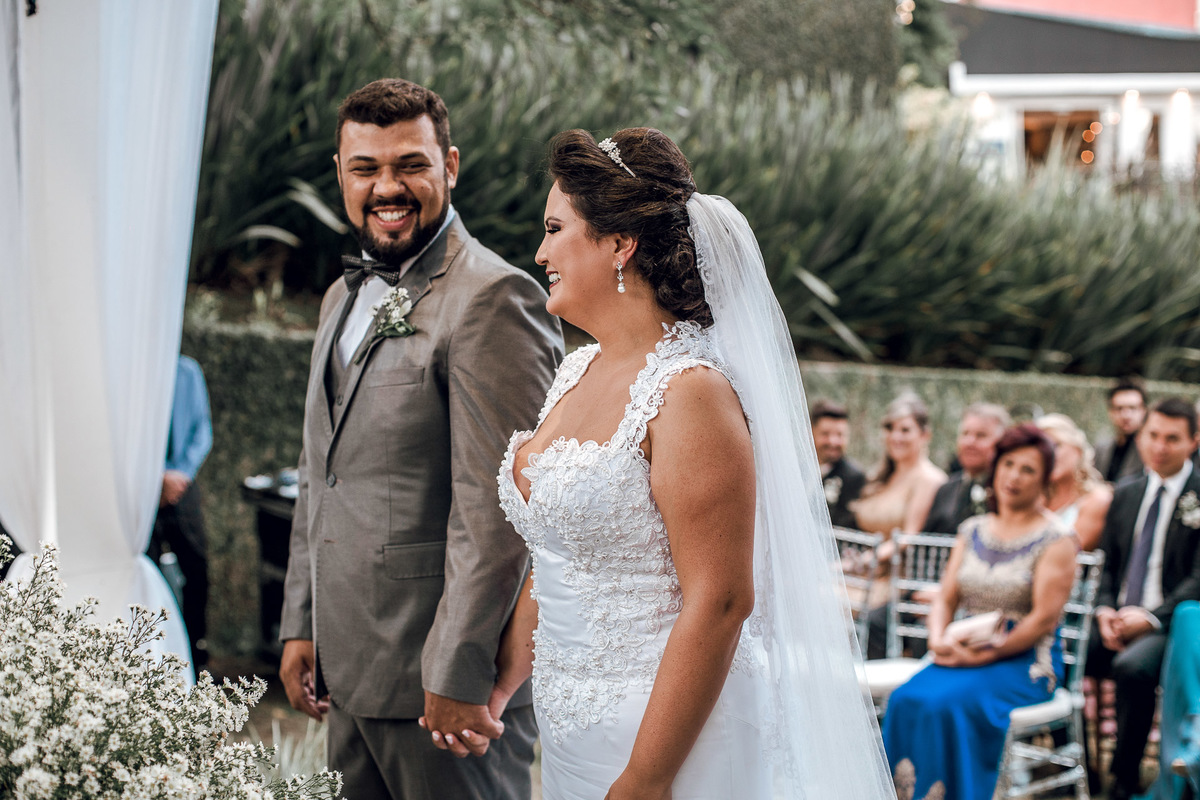 O dia da Tali e do Paulo foi lindo demais. O dia amanheceu ensolarado, coisa linda de se ver. E perto da cerimonia começou a fechar. A Tali começou a ficar preocupada, pois a cerimonia tinha sido programada pra ser externa.