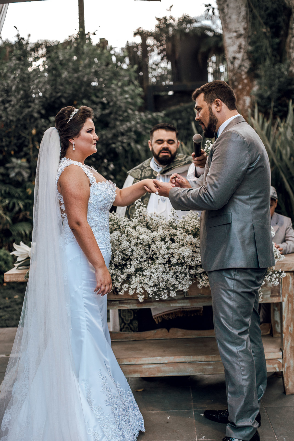 E parece que a medida que íamos nos aproximando, as nuvens começaram a dissipar. A cerimonia começou, e quando vimos estava acontecendo! Do jeitinho que eles sonharam.